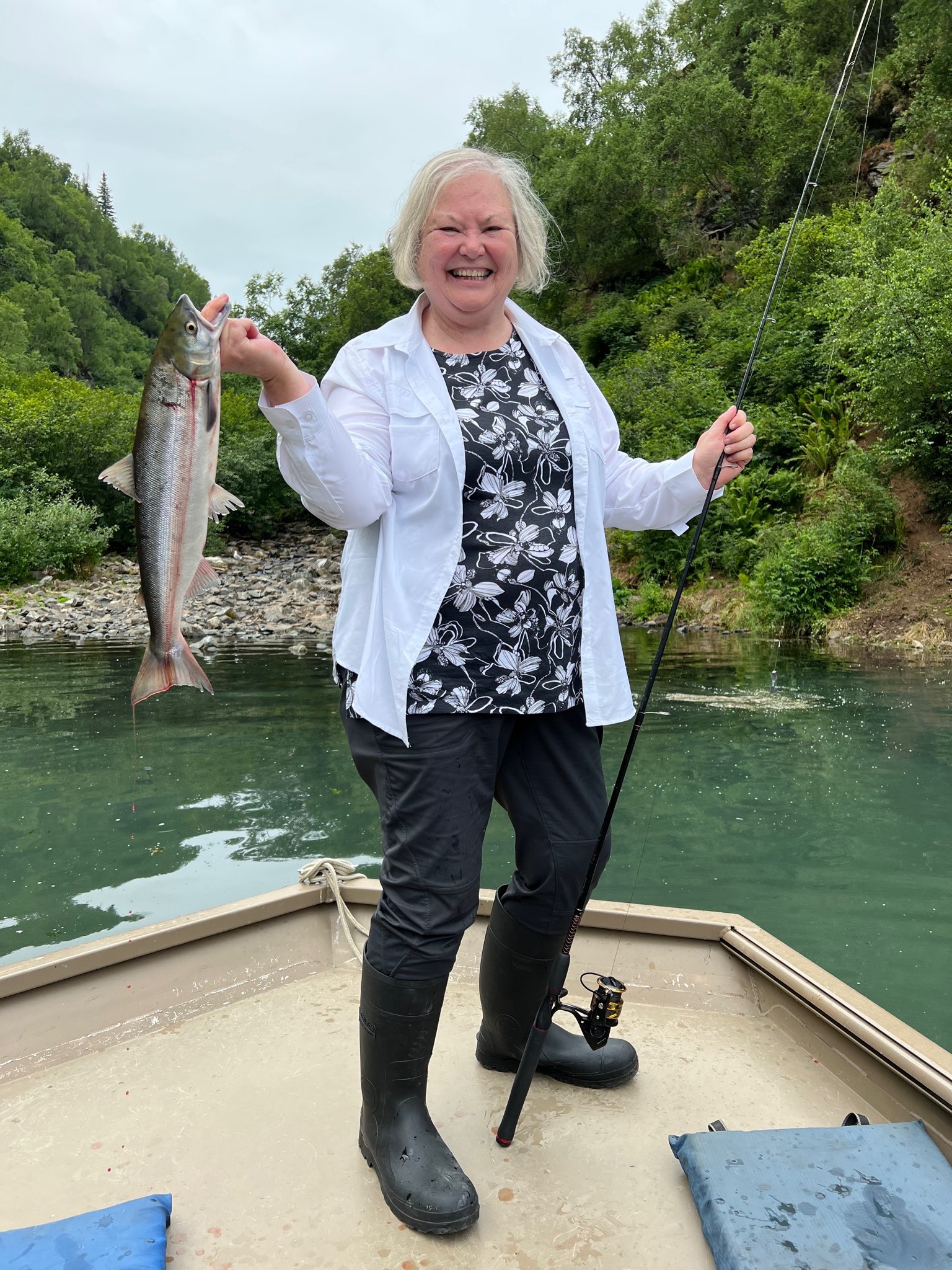 Each day was a new adventure all arranged by our friendly and knowledgeable staff. We went deep-sea fishing out of Seward on the Legacy. I caught my limit of 2 halibut and I also caught two cod. This was my first time deep-sea fishing and it was an incredible experience. Our lines were 150 feet down, so I admit I did need help from deck hands Marcel and Jeremy to reel them onto the boat.